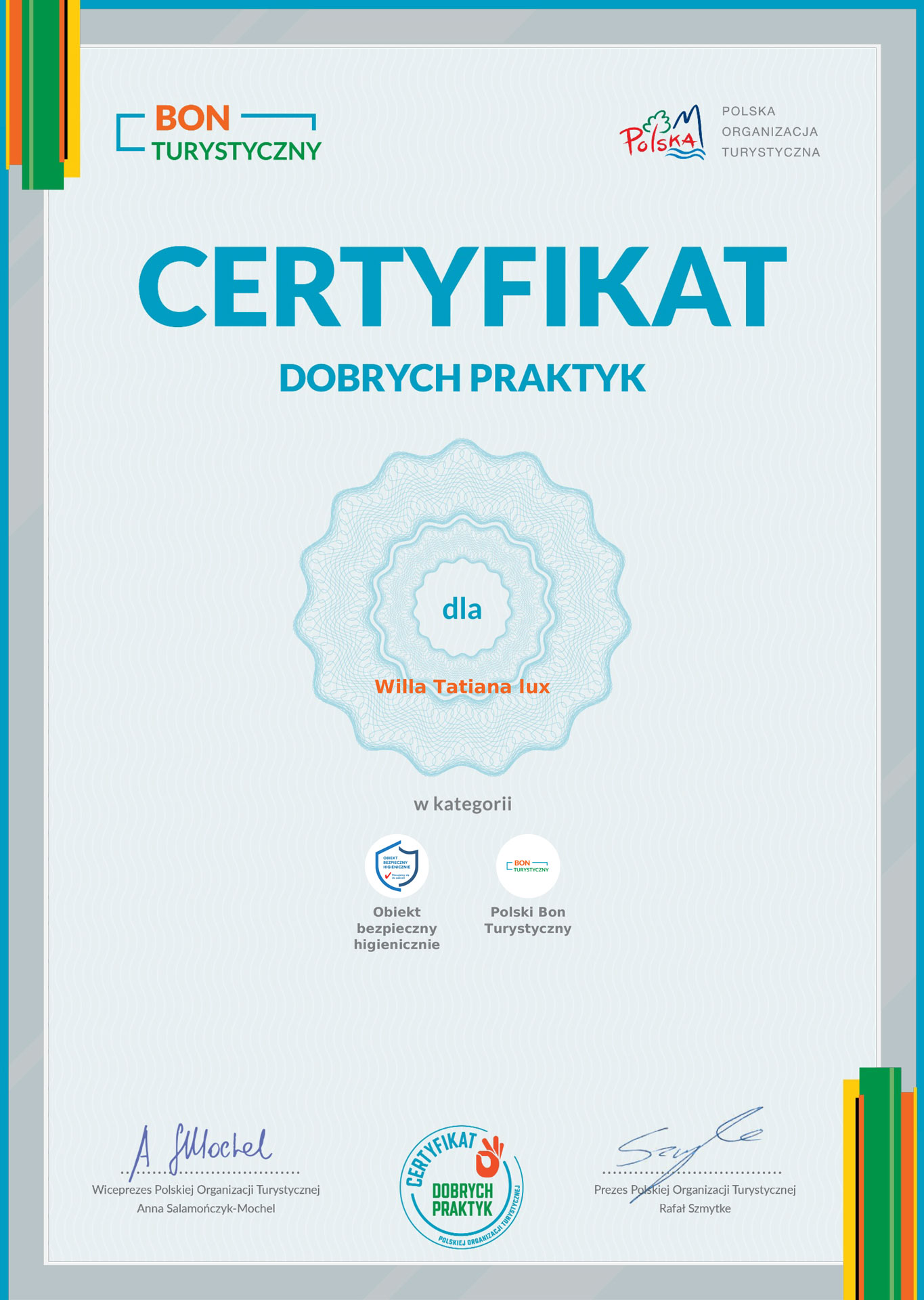 Obiekt bezpieczny higienicznie – zobacz potwierdzenie Polskiej Organizacji Turystycznej
