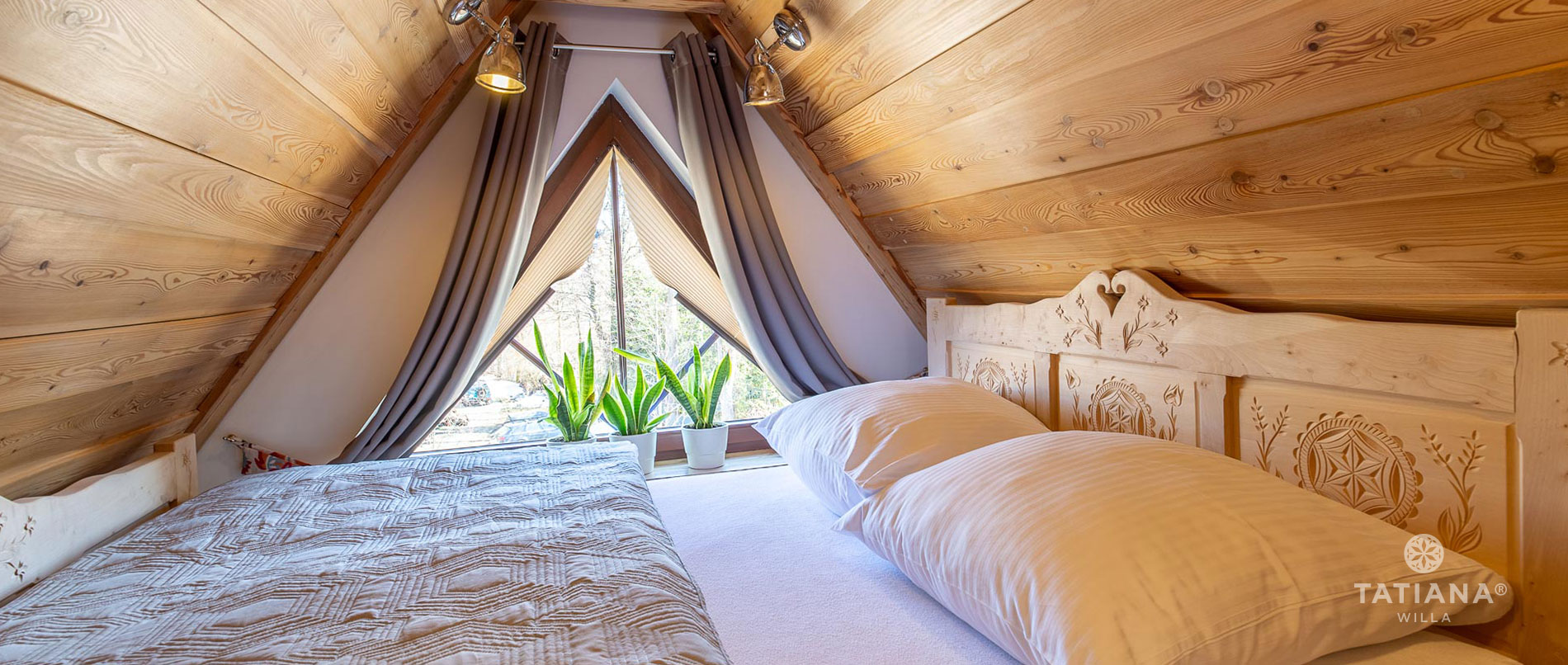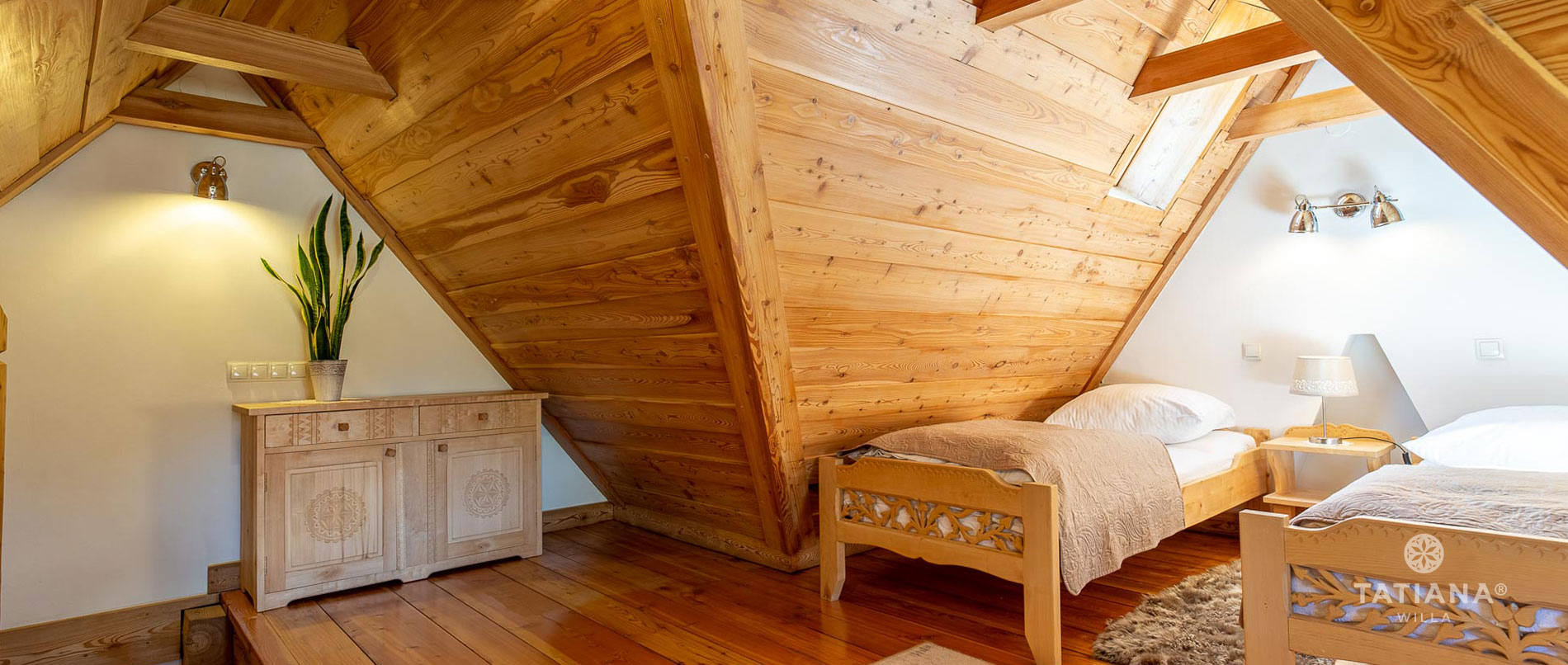 Apartament będący kwintesencja typowej izby góralskiej, wykonany w jasnym drewnie sosnowym, szerokie płazy nadają charakteru temu pomieszczeniu, jest bajecznie kolorowy dzięki dodatkom. Zachęca do beztroskiego wypoczynku.