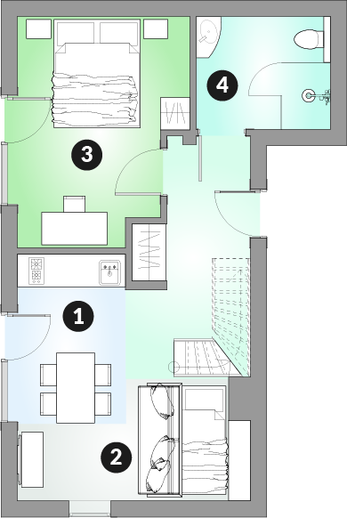 - nie ma części wspólnych takich jak kuchnie, łazienki, każdy apartament funkcjonuje jak niezależne mieszkanie