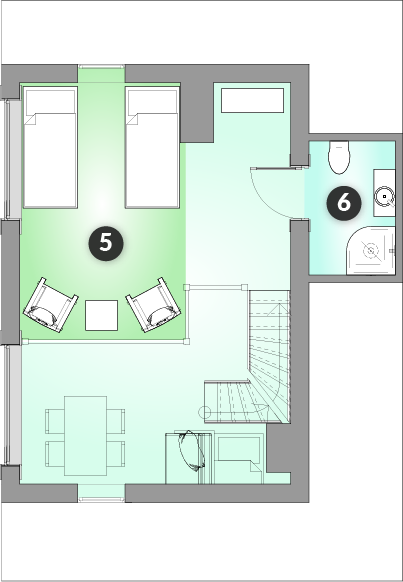 • sześcioosobowy, dwupoziomowy apartament o powierzchni ok. 60 m²,