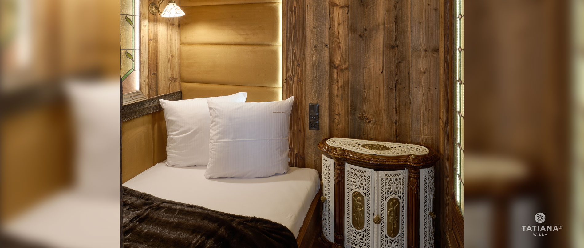 Zapraszamy do apartamentu, zainspirowanego stylem willa Tatiana Lux, która jest kwintesencją stylu Podhalańskiego z nutą rustykalnego klimatu. Wykorzystanie żywej kolorystyki tkanin oraz piękno modrzewia, które nadaje wnętrzu ciepły klimat, zostały wzbogacone drewnem, rosnącym wprost w apartamencie.